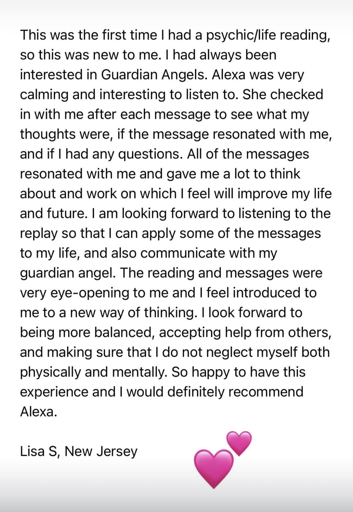 My reading with Alexa was spot on! She made sure I was comfortable receiving my spirit guides and messages regarding my career goals. I was seeking direction to a choice with my career path and she affirmed my choices. I am so blessed to have found her and I feel at peace with all my questions answered. She is so talented and intuitive. She was also very insightful and I could feel the messages were genuine and solely to me. I look forward to my direction in career path and guidance from her.